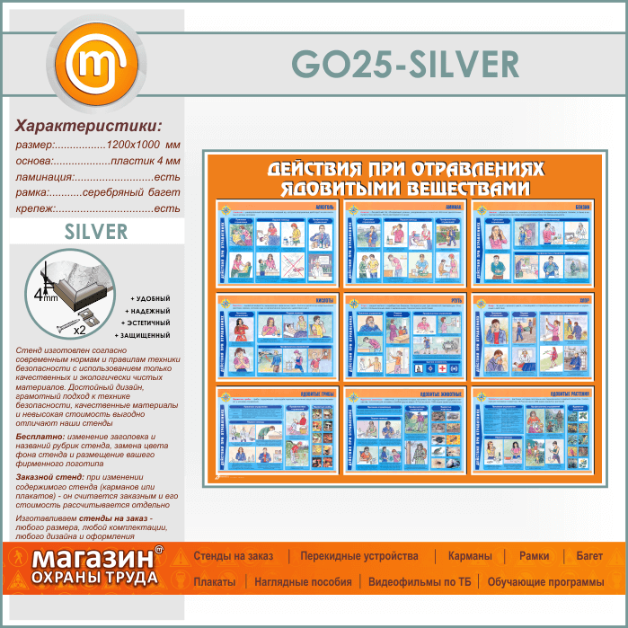 Стенд «Действия при отравлении ядовитыми веществами» (GO-25-SILVER) в Кызыле купить