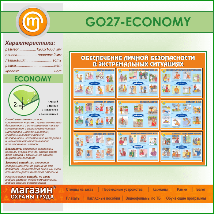 Стенд «Обеспечение личной безопасности в экстремальных ситуациях» (GO-27-ECONOMY) в Кызыле купить