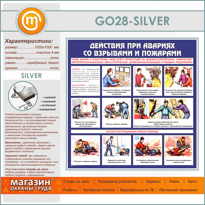 Стенд «Действия при авариях со взрывами и пожарами» (GO-28-SILVER) в Кызыле купить