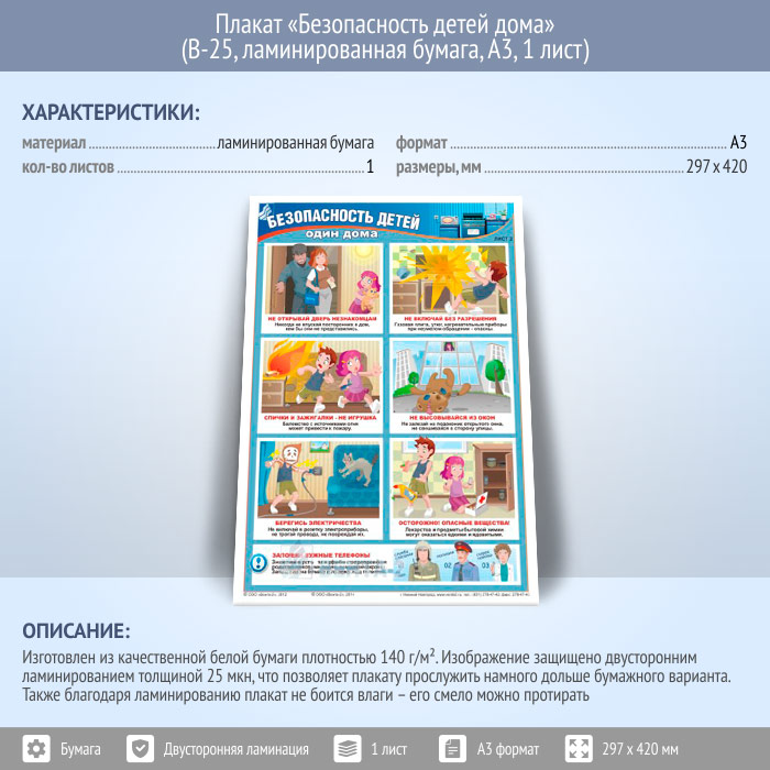 Плакат «Безопасность детей дома» (В-25, ламинированная бумага, А3, 1 лист) в Кызыле купить