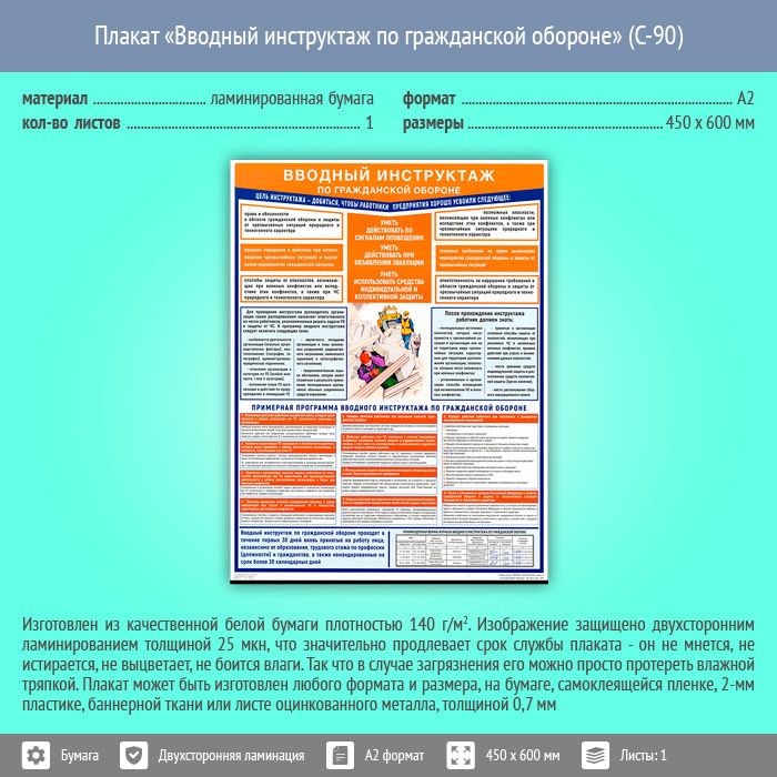 Плакат «Вводный инструктаж по гражданской обороне» (С-90, ламинированная бумага, А2, 1 лист) в Кызыле купить