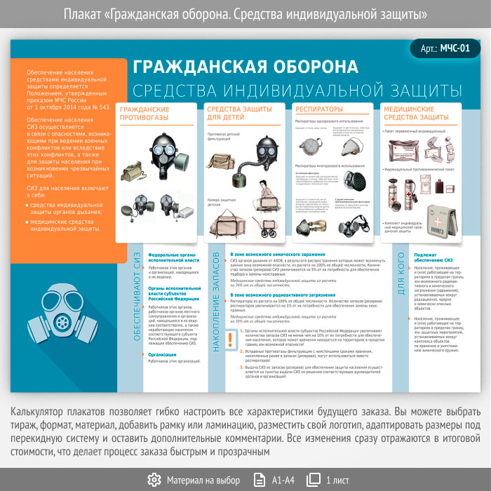Плакат «Гражданская оборона. Средства индивидуальной защиты» (МЧС-01, 1 лист) в Кызыле купить
