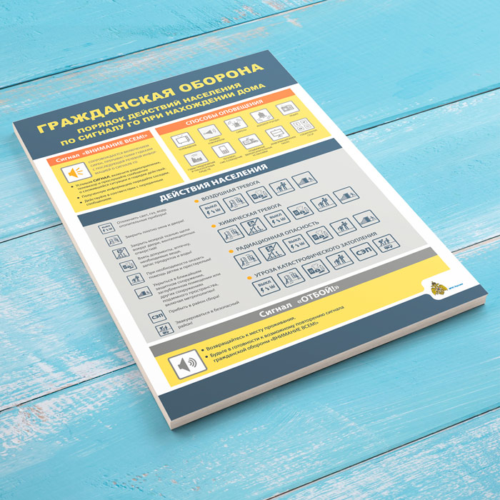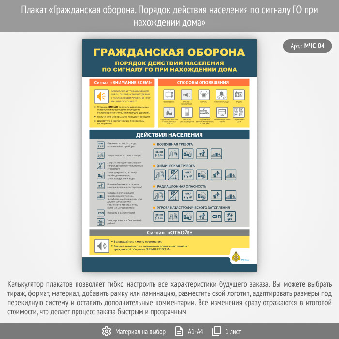 Плакат «Гражданская оборона. Порядок действия населения по сигналу ГО при нахождении дома» (МЧС-04, 1 лист) в Кызыле купить