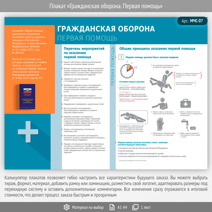 Плакат «Гражданская оборона. Первая помощь» (МЧС-07, 1 лист) в Кызыле купить