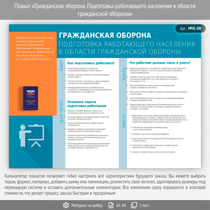 Плакат «Гражданская оборона. Подготовка работающего населения в области гражданской обороны» (МЧС-08, 1 лист) в Кызыле купить