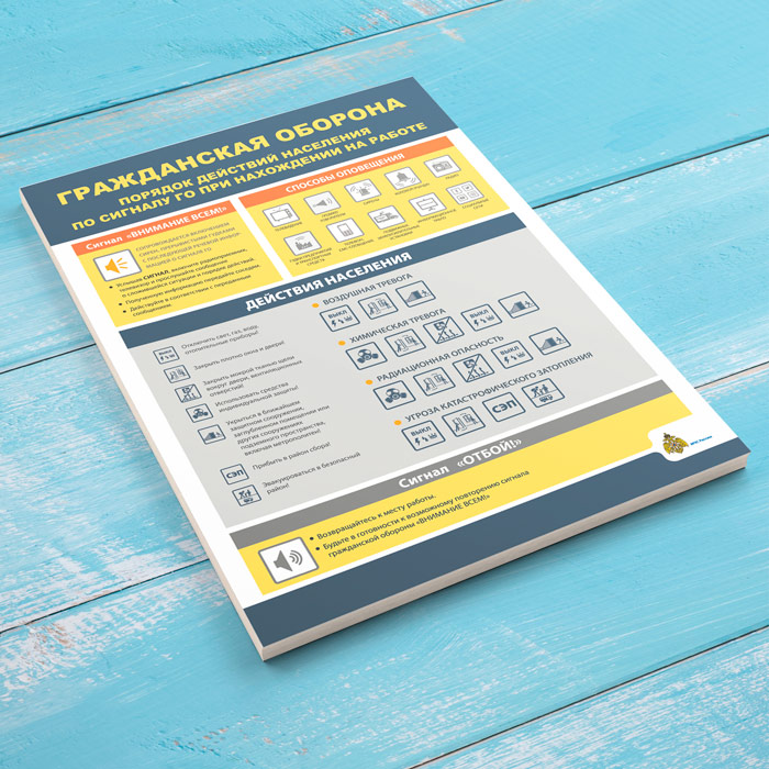 Плакат «Гражданская оборона. Порядок действия населения по сигналу ГО при нахождении на работе» (МЧС-09, 1 лист) в Кызыле купить