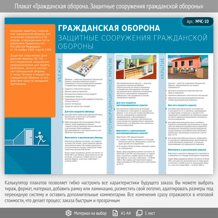 Плакат «Гражданская оборона. Защитные сооружения гражданской обороны» (МЧС-10, 1 лист) в Кызыле купить