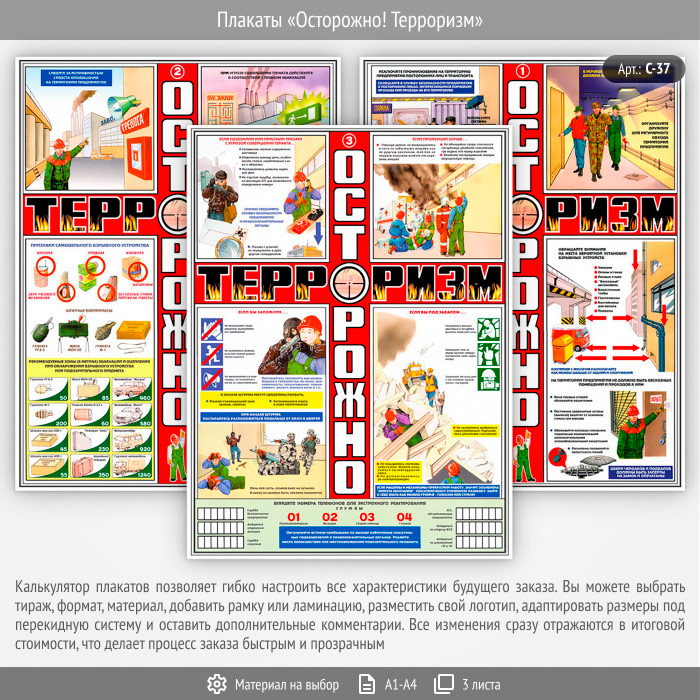 Плакаты «Осторожно! Терроризм» (С-37, 3 листа) в Кызыле купить
