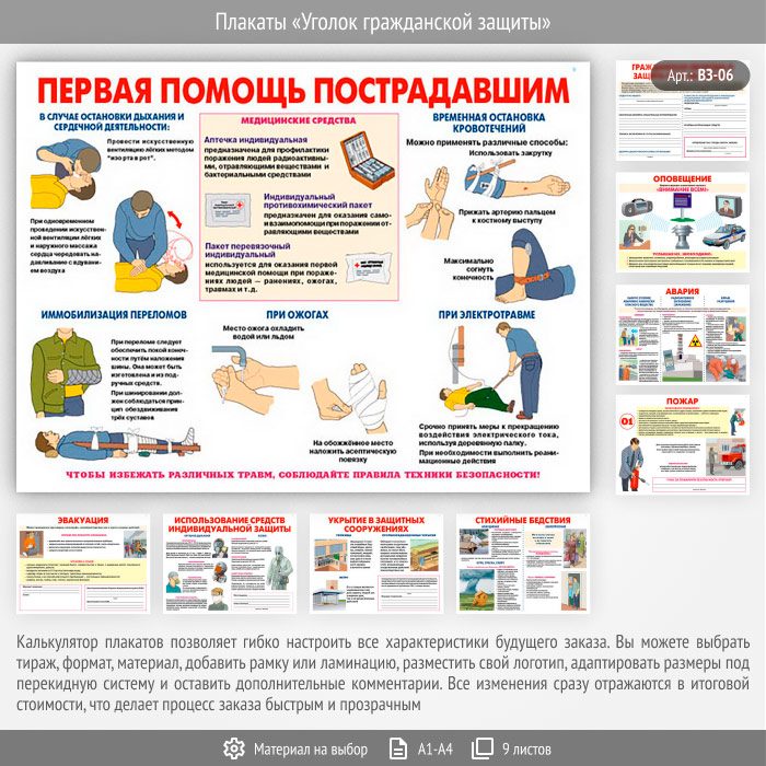 Плакаты «Уголок гражданской защиты» (ВЗ-06, 9 листов) в Кызыле купить