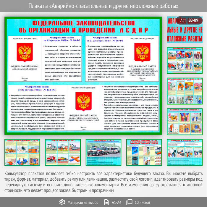 Плакаты «Аварийно-спасательные и другие неотложные работы» (ВЗ-09, 9 листов) в Кызыле купить