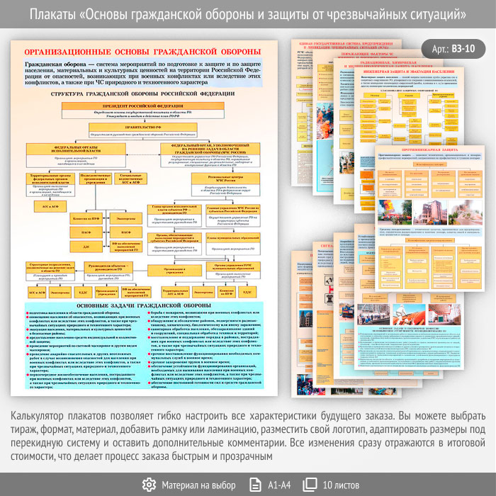 Плакаты «Основы гражданской обороны и защиты от чрезвычайных ситуаций» (ВЗ-10, 10 листов) в Кызыле купить