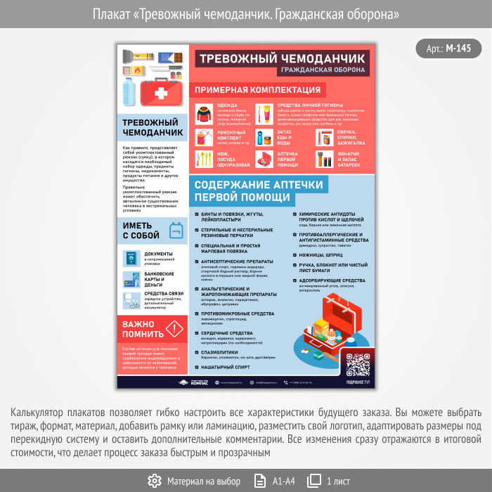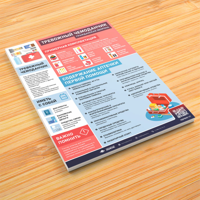 Плакат «Тревожный чемоданчик. Гражданская оборона» с QR (М-145, 1 лист) в Кызыле купить
