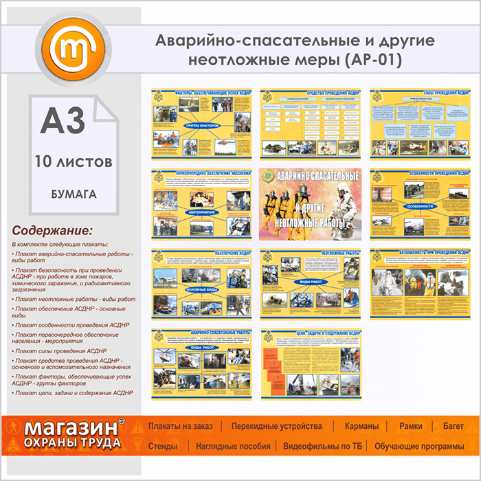 Плакаты «Аварийно-спасательные и другие неотложные меры» (АР-01, бумага, А3, 10 листов) в Кызыле купить