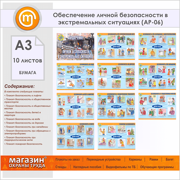 Плакаты «Обеспечение личной безопасности в экстремальных ситуациях» (АР-06, бумага, А3, 10 листов) в Кызыле купить