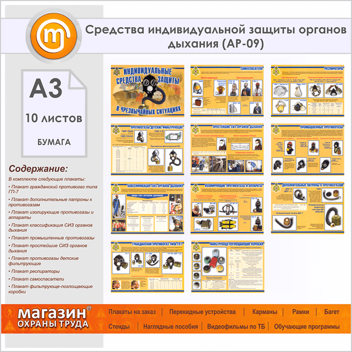 Плакаты «Средства индивидуальной защиты органов дыхания» (АР-09, бумага, А3, 10 листов) в Кызыле купить