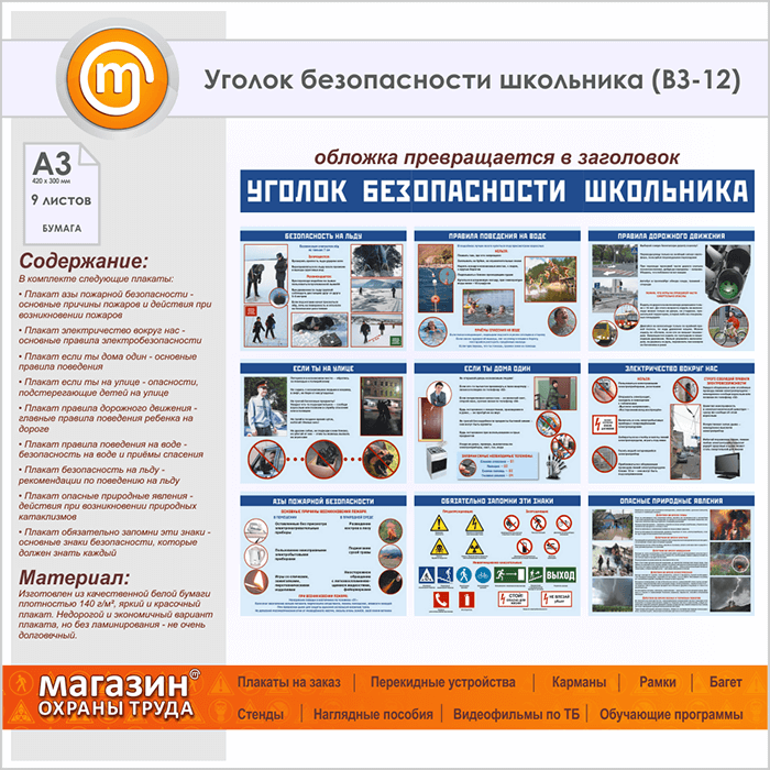 Плакаты «Уголок безопасности школьника» (ВЗ-12, бумага, А3, 10 листов) в Кызыле купить