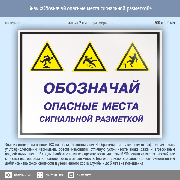 Знак «Обозначай опасные места сигнальной разметкой», КЗ-30 (пластик, 400х300 мм) в Кызыле купить