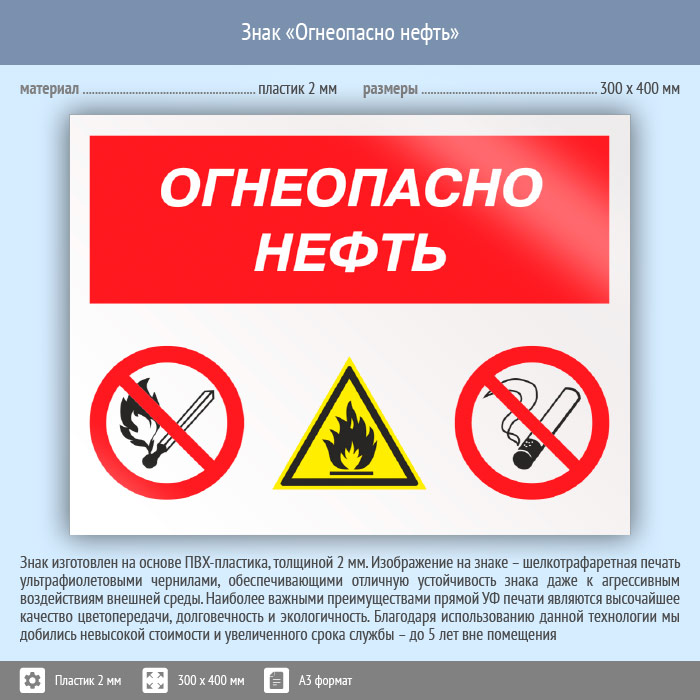 Знак «Огнеопасно нефть», КЗ-31 (пластик, 400х300 мм) в Кызыле купить