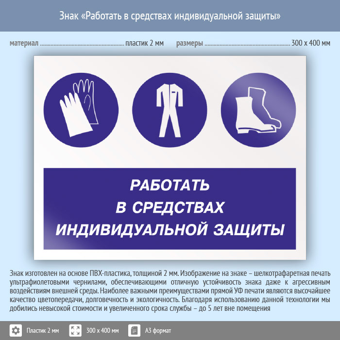 Знак «Работать в средствах индивидуальной защиты», КЗ-81 (пластик, 400х300 мм) в Кызыле купить