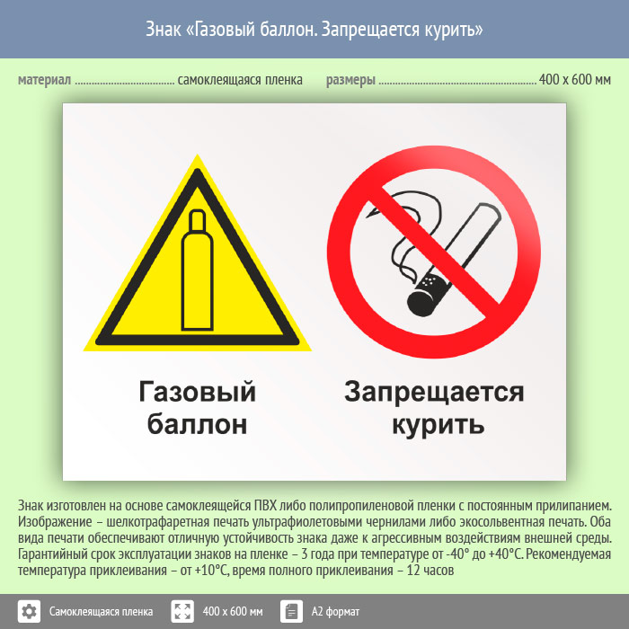 Знак «Газовый баллон. Запрещается курить», КЗ-18 (пленка, 600х400 мм) в Кызыле купить