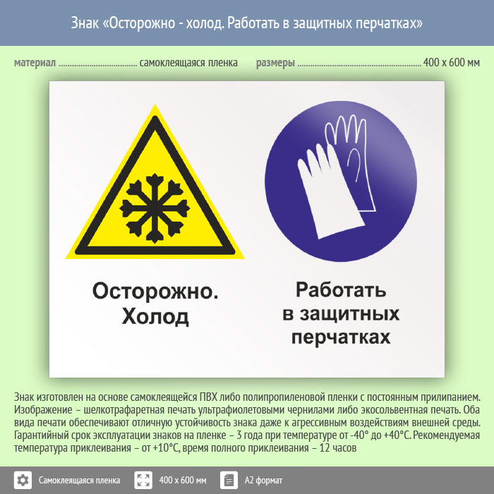 Знак «Осторожно - холод. Работать в защитных перчатках», КЗ-59 (пленка, 600х400 мм) в Кызыле купить