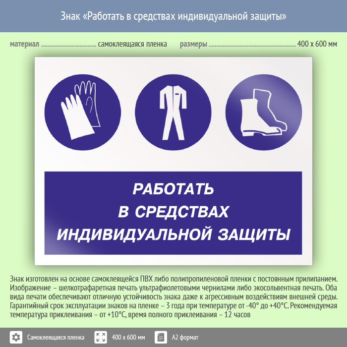 Знак «Работать в средствах индивидуальной защиты», КЗ-81 (пленка, 600х400 мм) в Кызыле купить