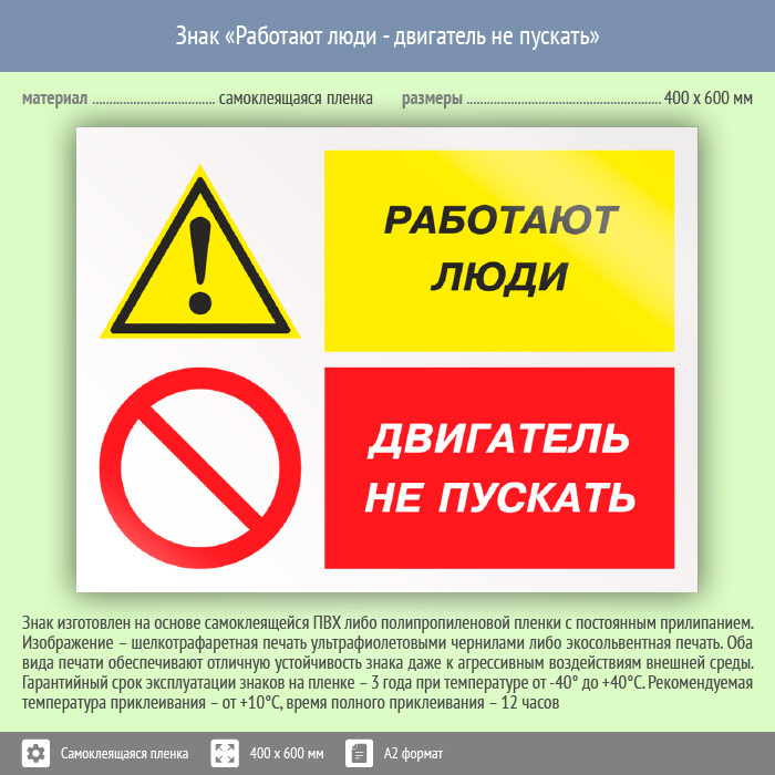 Знак «Работают люди - двигатель не пускать», КЗ-82 (пленка, 600х400 мм) в Кызыле купить