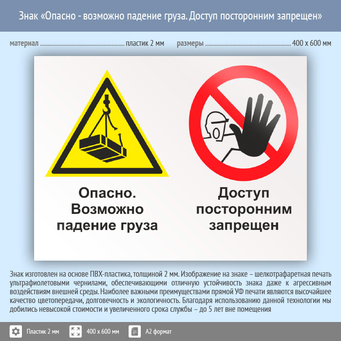 Знак «Опасно - возможно падение груза. Доступ посторонним запрещен», КЗ-33 (пластик, 600х400 мм) в Кызыле купить