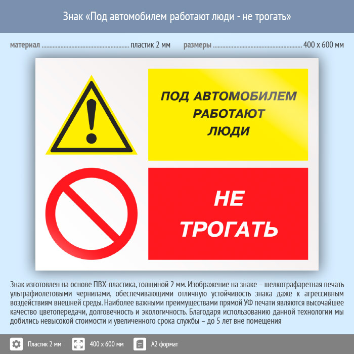 Знак «Под автомобилем работают люди - не трогать», КЗ-66 (пластик, 600х400 мм) в Кызыле купить