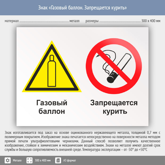 Знак «Газовый баллон. Запрещается курить», КЗ-18 (металл, 400х300 мм) в Кызыле купить