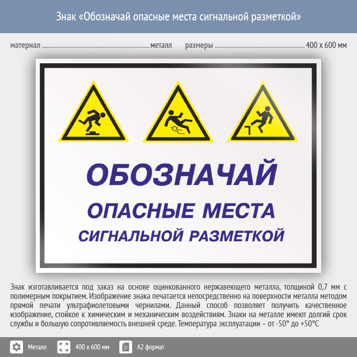 Знак «Обозначай опасные места сигнальной разметкой», КЗ-30 (металл, 600х400 мм) в Кызыле купить