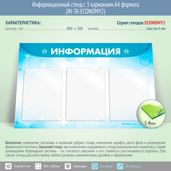 Информационный стенд с 3 карманами А4 формата (IN-3K-ECONOMY2) в Кызыле купить