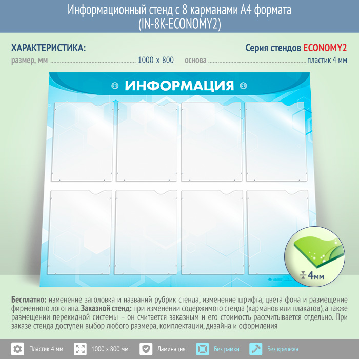 Информационный стенд с 8 карманами А4 формата (IN-8K-ECONOMY2) в Кызыле купить