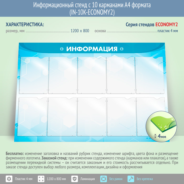Информационный стенд с 10 карманами А4 формата (IN-10K-ECONOMY2) в Кызыле купить