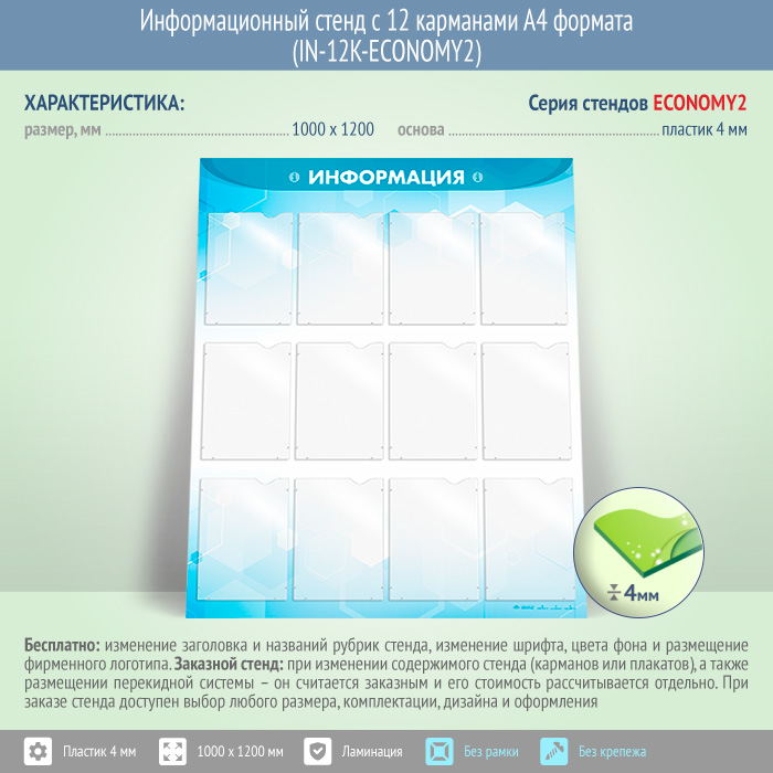 Информационный стенд с 12 карманами А4 формата (IN-12K-ECONOMY2) в Кызыле купить