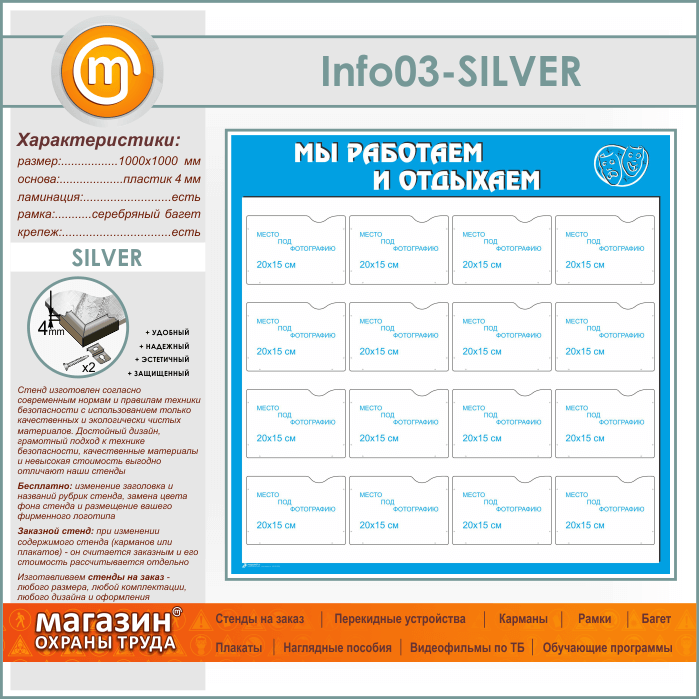 Стенд «Мы работаем и отдыхаем» с 16 карманами А5 формата (IN-03-SILVER) в Кызыле купить