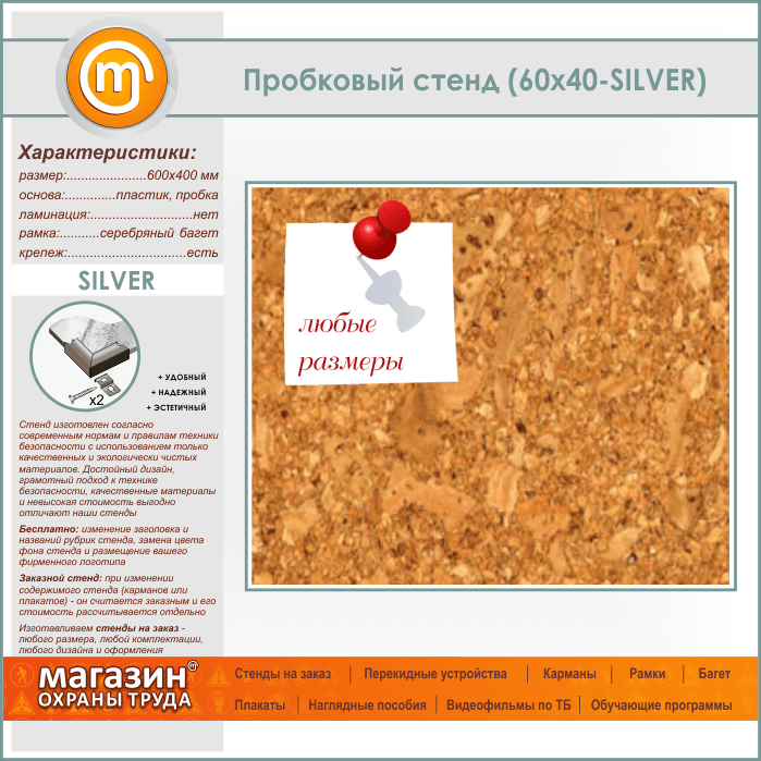 Пробковая доска, 60х40 см (IN-05-SILVER) в Кызыле купить