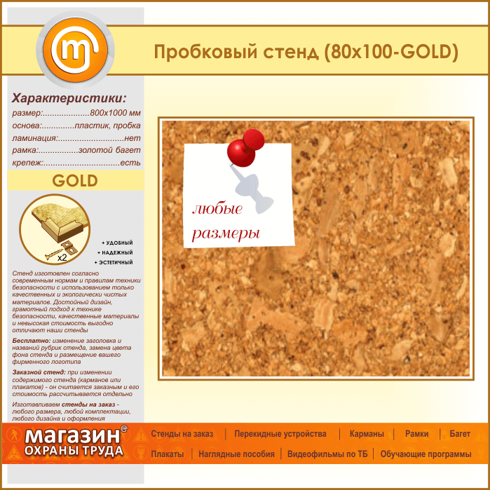 Пробковая доска, 100х80 см (IN-05-GOLD) в Кызыле купить