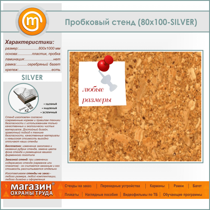 Пробковая доска, 100х80 см (IN-05-SILVER) в Кызыле купить