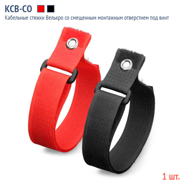 Кабельная стяжка Велькро со смещенным монтажным отверстием под винт - КСВ-СО 20х300 (ч) (1 шт.) в Кызыле купить