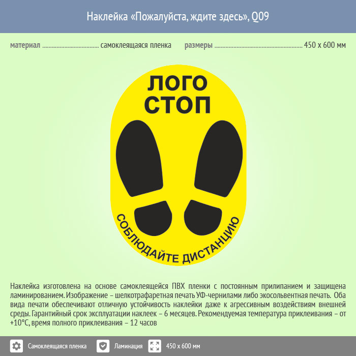 Наклейка на пол «Пожалуйста, ждите здесь», Q09 (пленка c ламинированием, 450х600 мм) в Кызыле купить