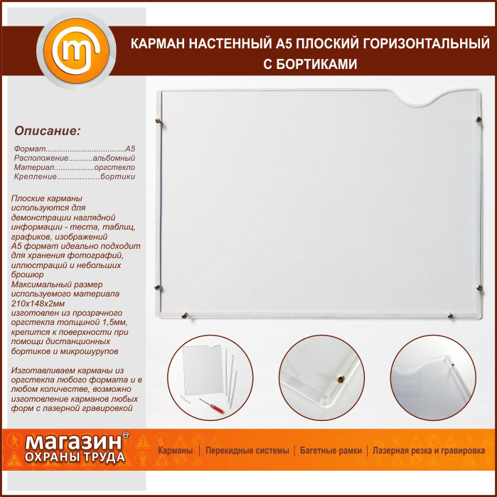 Карман настенный А5 плоский горизонтальный с бортиками в Кызыле купить