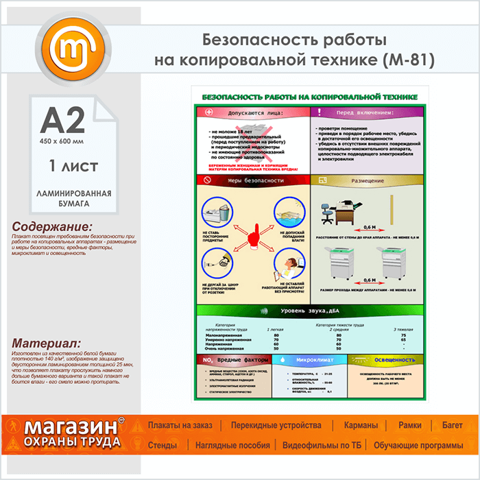 Плакат «Безопасность работы на копировальной технике» (М-81, ламинированная бумага, А2, 1 лист) в Кызыле купить