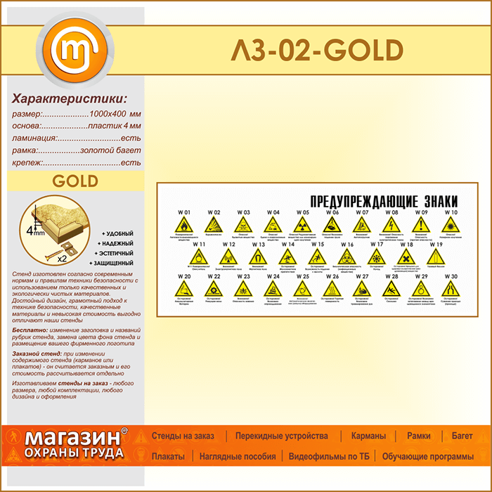 Стенд «Предупреждающие знаки» (LZ-02-GOLD) в Кызыле купить