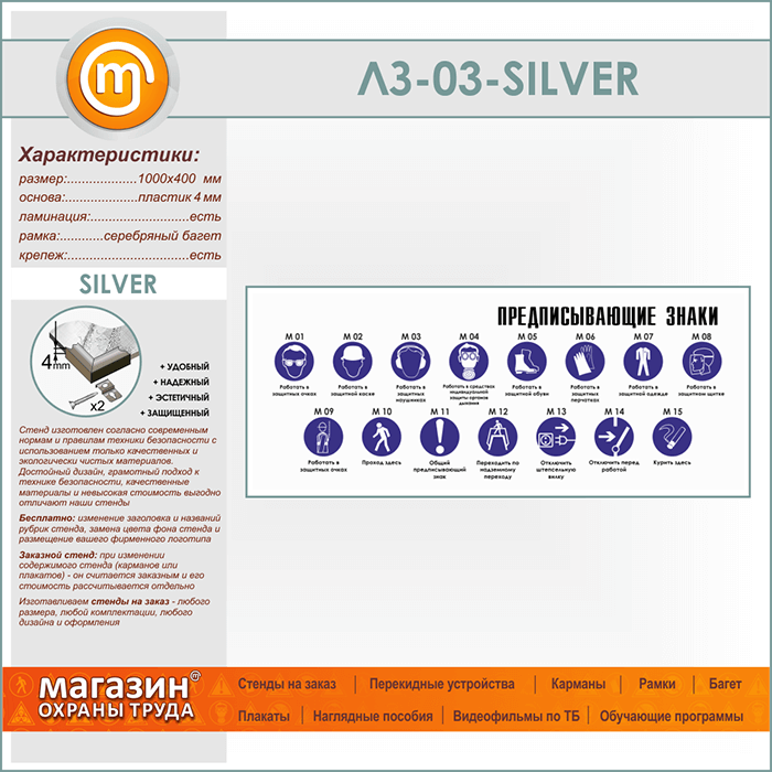 Стенд «Предписывающие знаки» (LZ-03-SILVER) в Кызыле купить