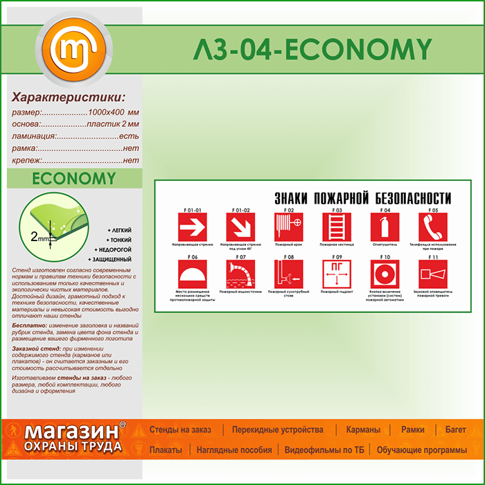 Стенд «Знаки пожарной безопасности» (LZ-04-ECONOMY) в Кызыле купить