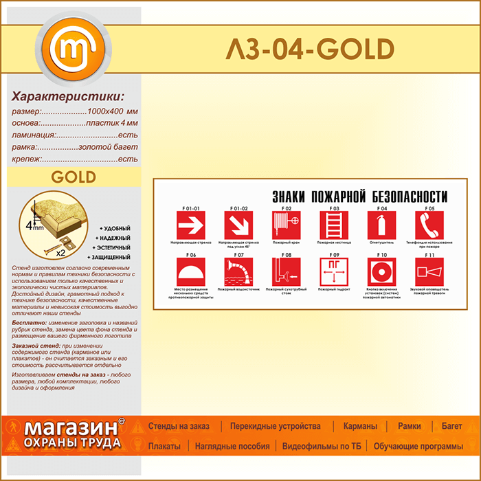 Стенд «Знаки пожарной безопасности» (LZ-04-GOLD) в Кызыле купить