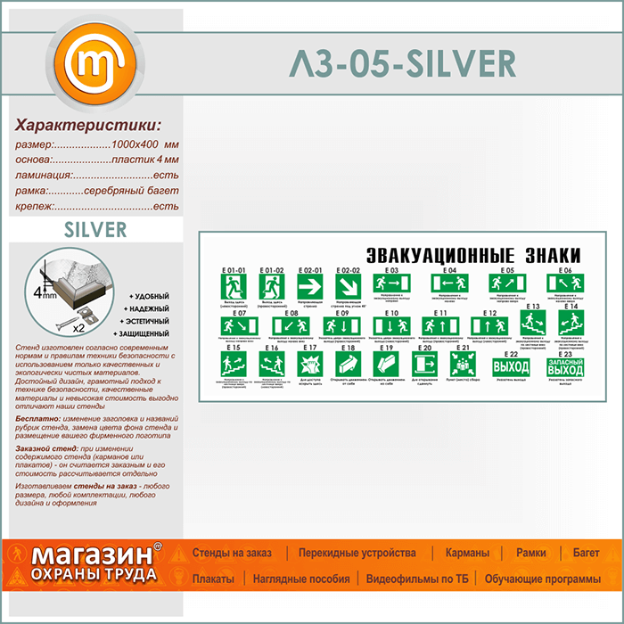Стенд «Эвакуационные знаки» (LZ-05-SILVER) в Кызыле купить