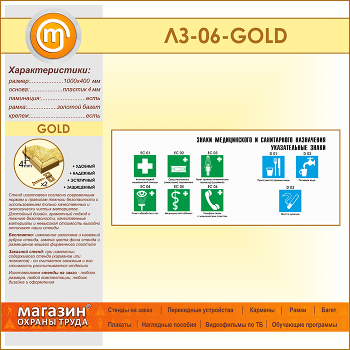Стенд «Знаки медицинского и санитарного назначения. Указательные знаки» (LZ-06-GOLD) в Кызыле купить