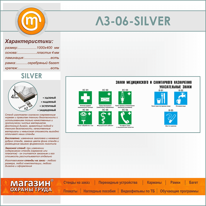 Стенд «Знаки медицинского и санитарного назначения. Указательные знаки» (LZ-06-SILVER) в Кызыле купить